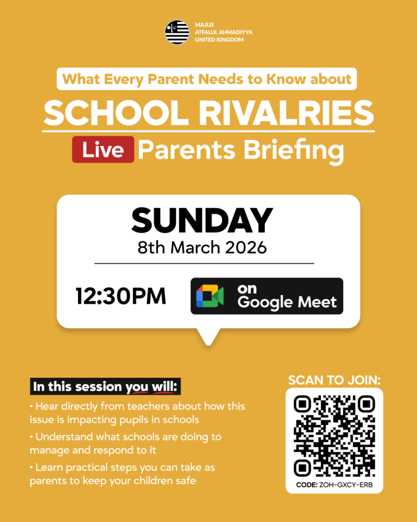 Alarming Trend of ‘School Wars’ Across the country, a growing issue known as School Wars is affecting children in schools — and many parents are unaware of just how quickly it is spreading. Majlis Atfalul Ahmadiyya UK organised a 30-minute Live Parents Briefing on Sunday 8th March, exploring this matter in detail. https://youtu.be/8qsMxO1_BSM Click to […]